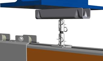 ─ Finally, the crane track is tightly bolted and secured. See Bolting on and securing the crane track to the craneway suspension.
