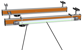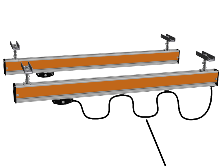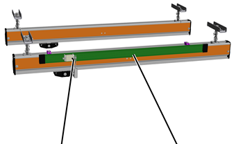 o Festoon cable system: the mains power supply consists of a flat cable which is fastened to cable sliders. These cable sliders are then pulled along by the HB crane. See Installing the festoon cable system.