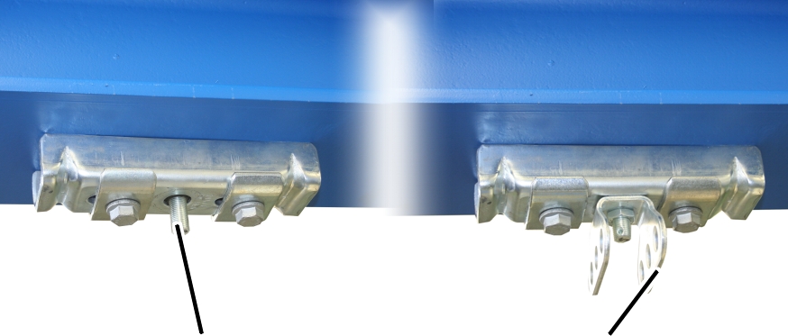 The figures show the installation of a ceiling-mounted bracket 2LP/M16 or M20 with projecting threaded rod (with normal suspension, short suspension and normal stiffener). The installation of a ceiling-mounted bracket 2LP/M16 with bolted-on articulated girder (with normal stiffener, inclined suspension, inclined stiffener and V-suspension) does not differ significantly from this. |