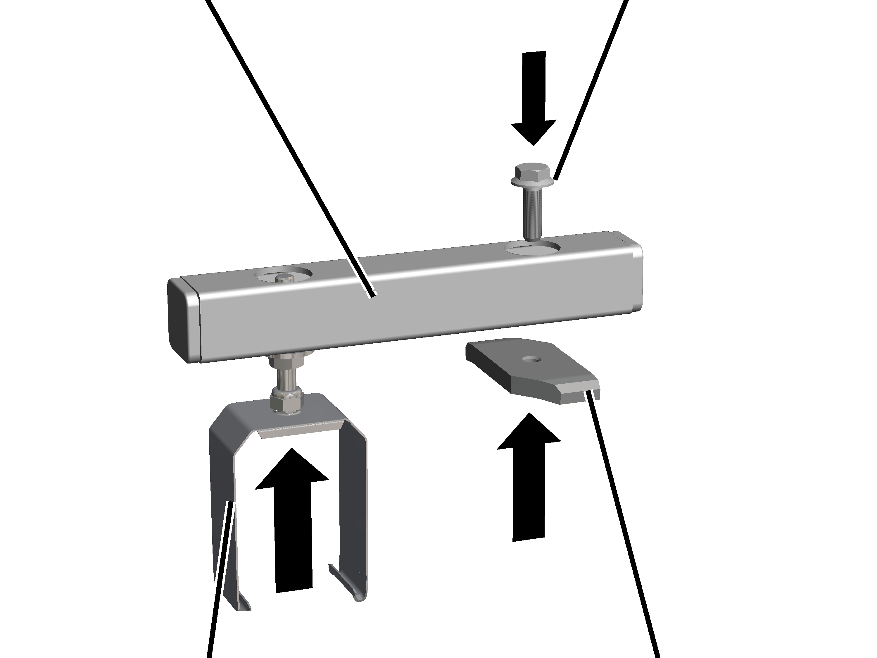 The carrier shaft can also be installed in drilled holes on which other add-on components (e.g. anti-collision device or HBF drive) have already been installed. In this case, remove the installed bolt and mount the add-on component with the carrier shaft.