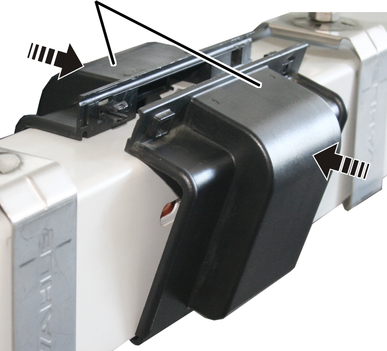 Every HB profile rail must be fitted with end caps on the profile ends. These prevent dirt from penetrating the HB profile rail and also serve as an end stopper to prevent the HB crane or trolley from falling out of the HB profile rail.