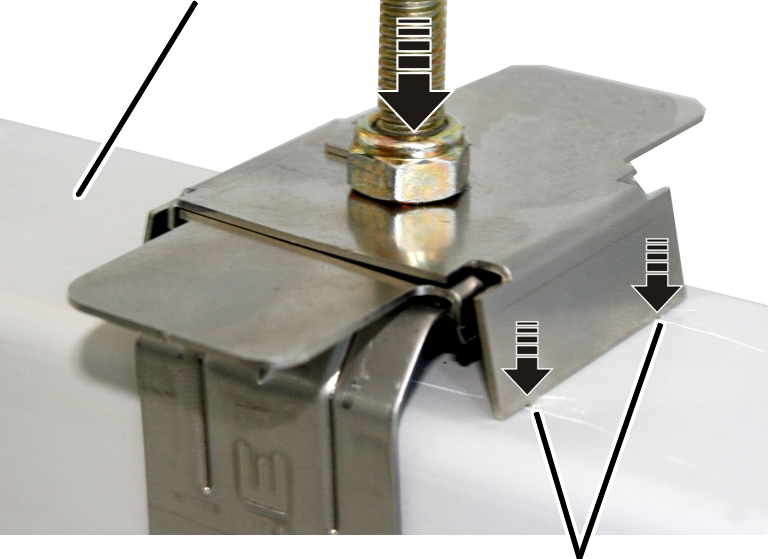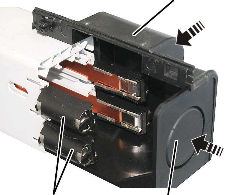 Insert the retaining cap (2x) bottom in the conductor system and the