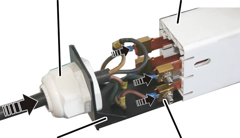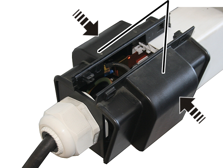 If needed, the cable fitting can also be mounted so that it protrudes downward from the base plate. Depending on the particular fitting situation and spatial conditions on-site, this may enable improved guiding of the cable.