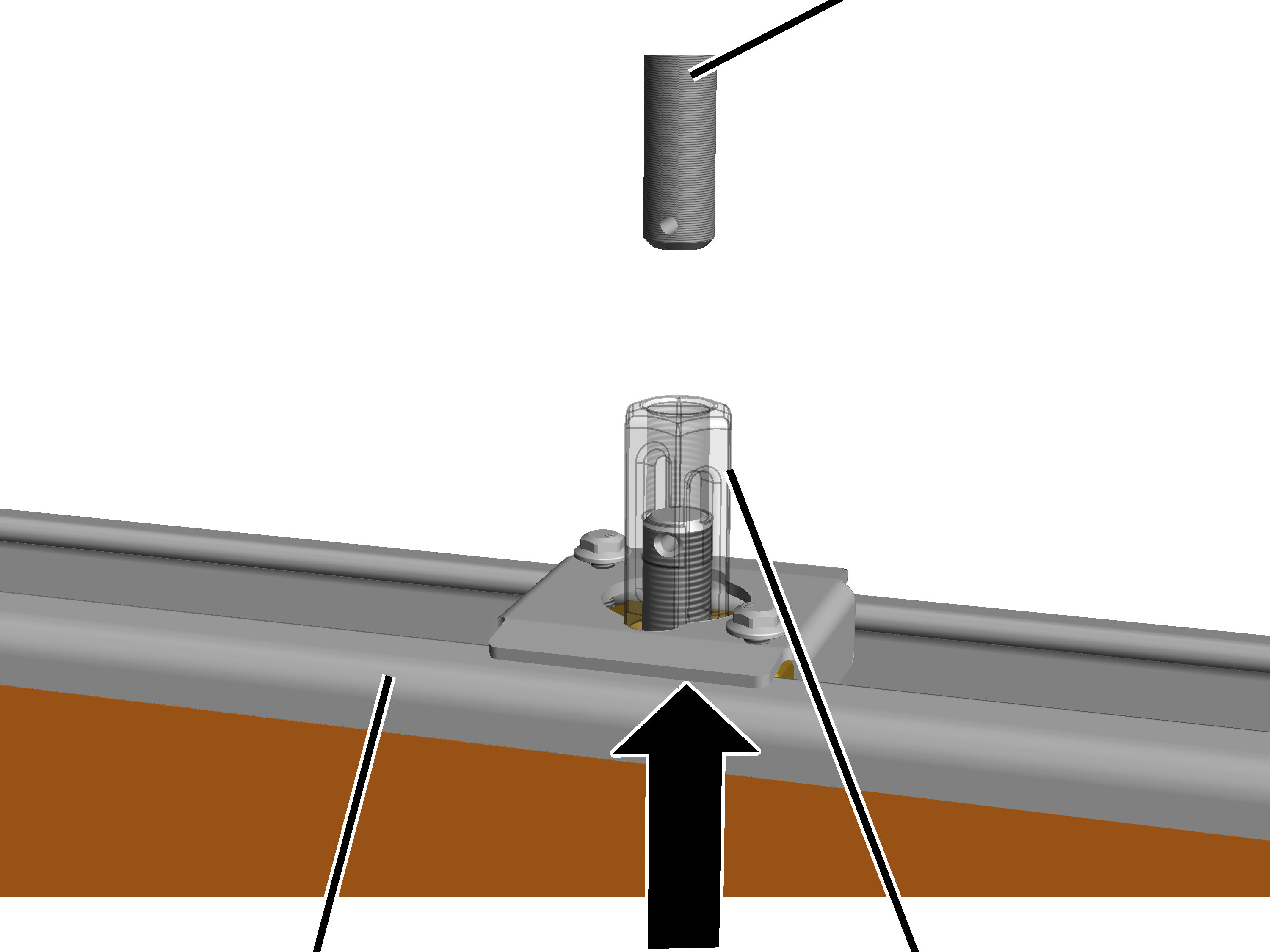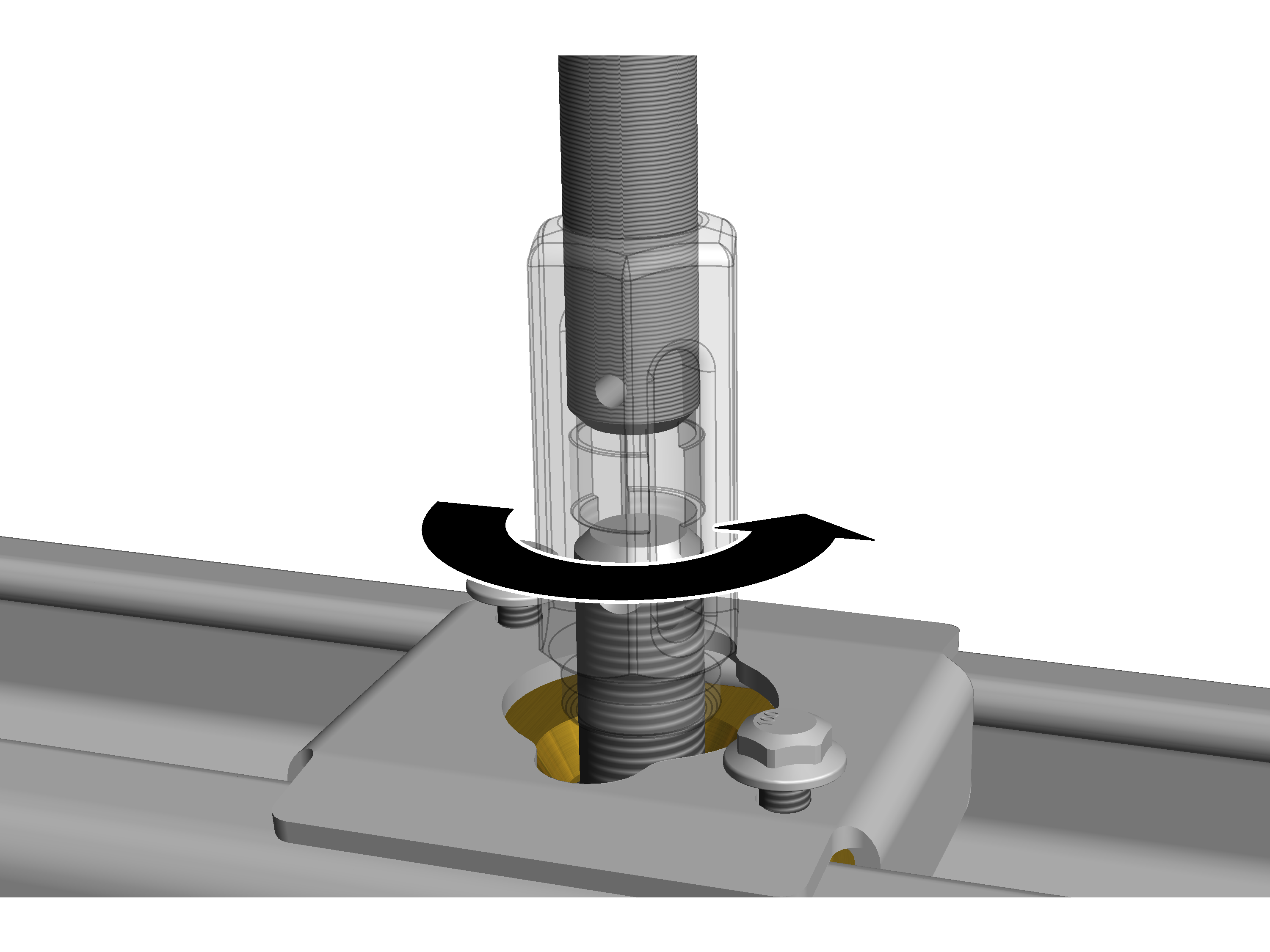 During installation, do not press the tension nut under the threaded rod! If the tension nut is pressed forcefully under the threaded rod of the suspension, the rubber mounting in the profile link can be damaged. For this reason, raise the profile rail section as carefully as possible until the tension nut is just beneath the threaded rod. |