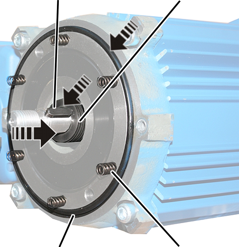 ● The anchor plate is pressed away from the motor. It is tensioned by a spring.