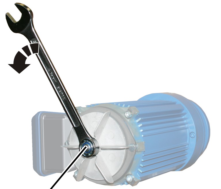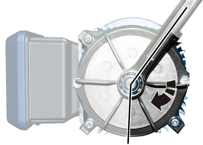 The self-locking nut is now released in order to optimally adjust the air gap of the brake. The releasing of the self-locking nut is oriented to the individual segments of the fan blade.