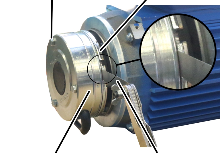 Die Bilder zeigen das Prüfen von Luftspalt und Bremsbelagstärke an einem Fahrantrieb der Baugröße 80. Das Prüfen an einem größeren oder kleineren Fahrantrieb unterscheidet sich nicht davon.