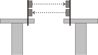─ Am einen Kran wird der Sender oben und der Empfänger unten montiert. Am anderen Kran umgekehrt.