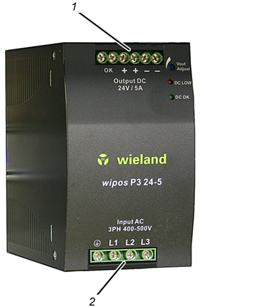 ─ 2: Light barrier for transmitting the release signal - receiver (can be recognised by the LED)