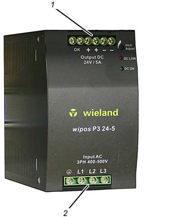 ─ 2: Módulo de ampliación con regletas de bornes para entrada y salida