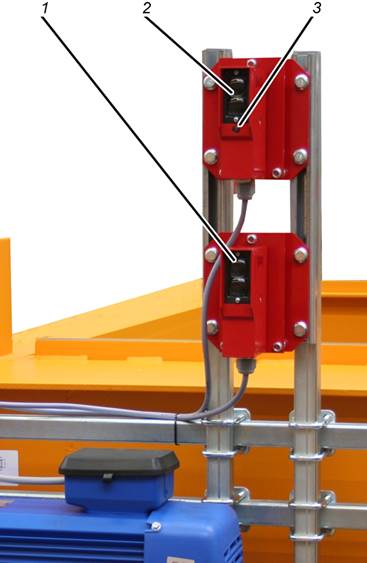 ─ Dos fotocélulas (emisor y receptor) para transmisión de la señal de detección por tramo de fotocélula