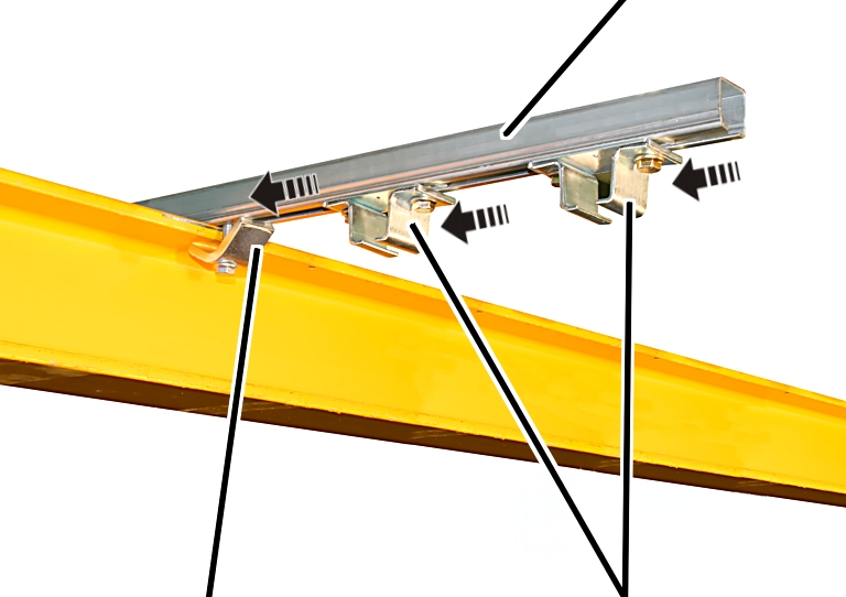 Die Laufschienen laufen parallel zum Ausleger. Vor der ersten Befestigungskonsole und hinter der letzten Befestigungskonsole dürfen die Laufschienen etwas überstehen.