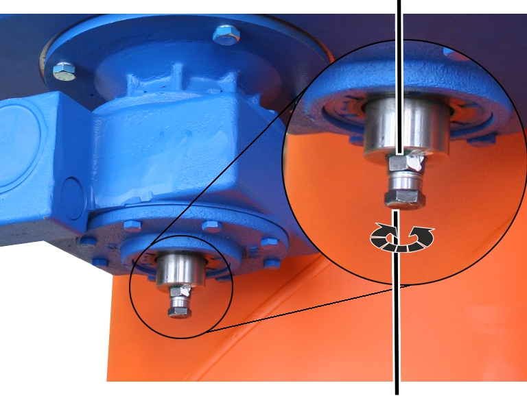 ─ Unscrew the hexagon head screw: the friction clutch runs with more softness. The jib crane exhibits more overrun, takes longer to come to a standstill and takes longer to start up. The softer the friction clutch setting, the lower the load the slewing drive, crane and surrounding construction are subject to due to acceleration and braking.