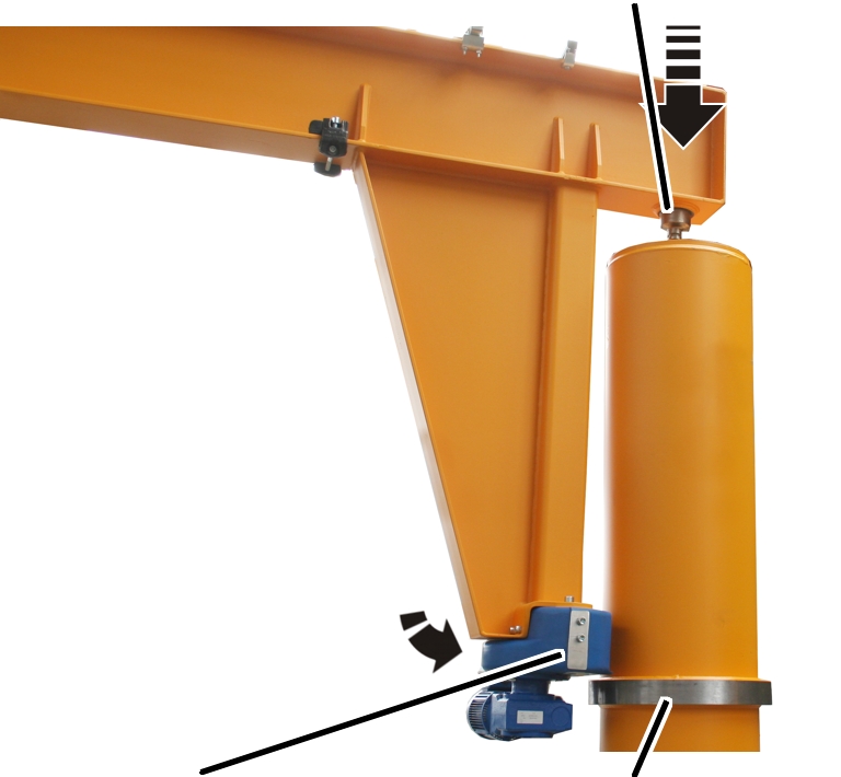 All individual components have now been affixed to the jib arm. The jib arm is now installed on the pillar and connected to it.