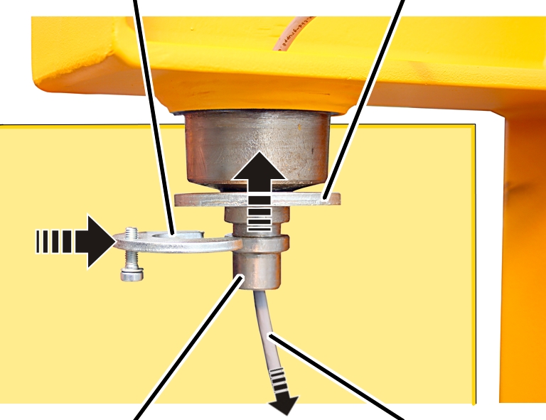 Danger due the the trolley rolling away! The trolley may roll away during jib arm installation, and injure persons, when it is not sufficiently secured. Secure the trolley on the jib arm against rolling away. |
