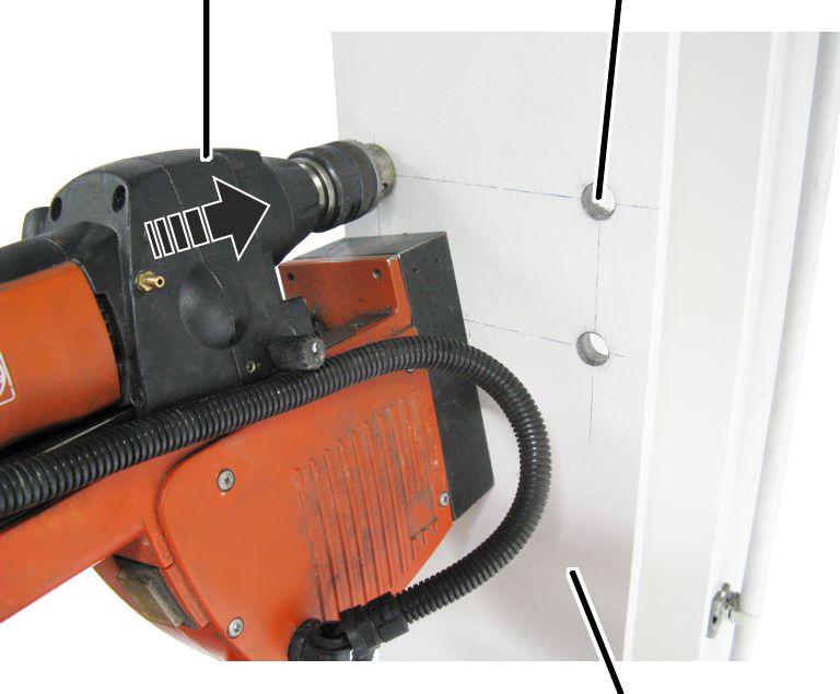 Les trous destinés au palier mural doivent maintenant être percés dans la structure portante (ex. : pilier du bâtiment, structure en acier).