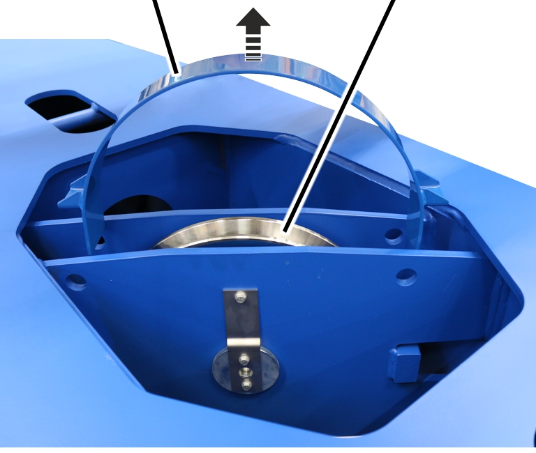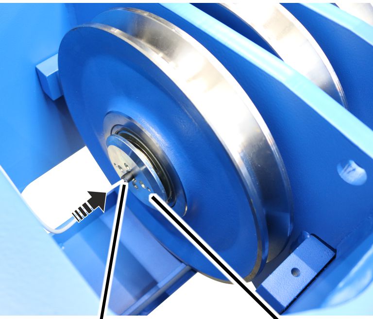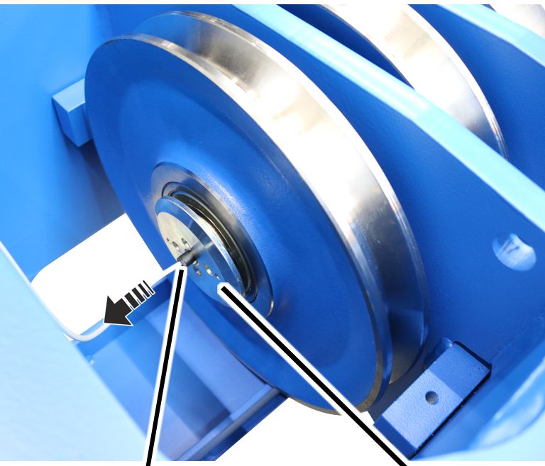 On a wire rope hoist with hoist drive GM 7000, the deflection roller is secured on the deflection roller using a bolt with a cover.