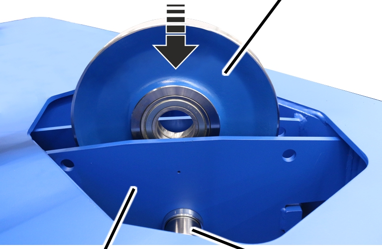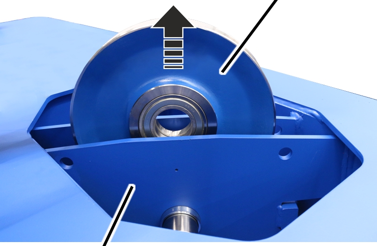 frame over the deflection roller crossheads and screw in with rib screws M10x16