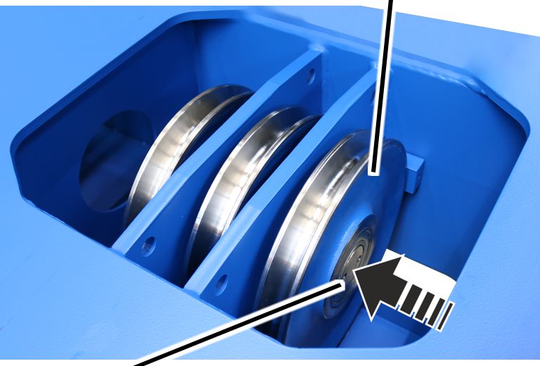 For a reeving 8/2 with a hoist drive GM 5000 or GM 6000, three deflection rollers are installed in the trolley frame.