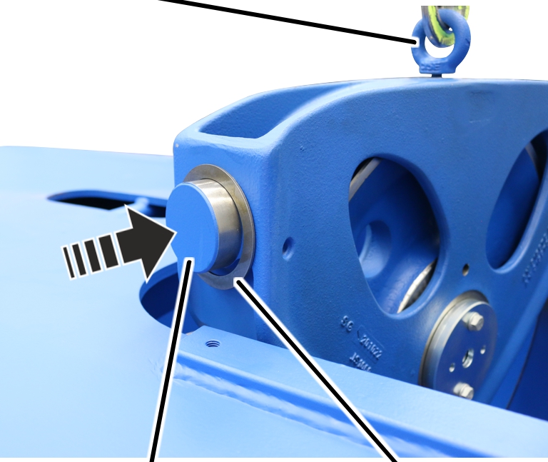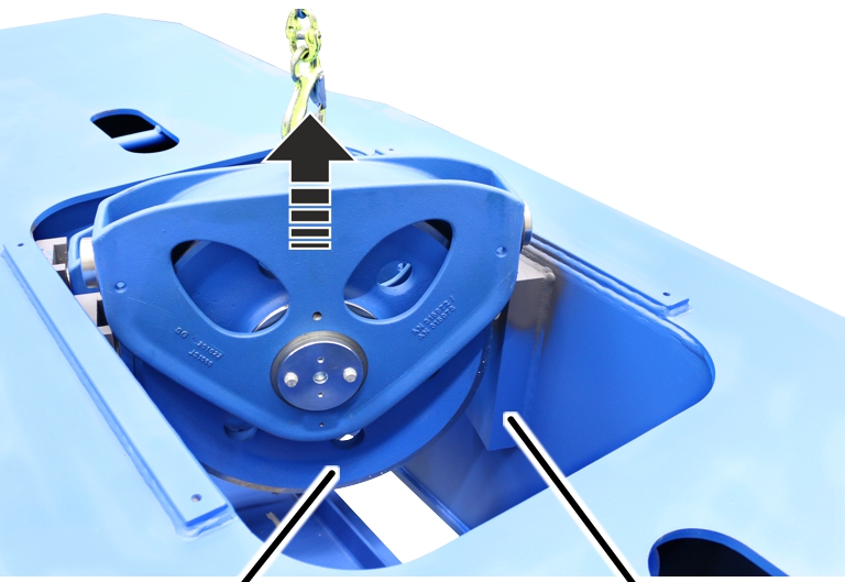 The procedure for replacing the deflection rollers on a wire rope hoist with one deflection roller (reeving 4/2) is shown below. The replacement procedure does not differ significantly for wire rope hoists with two deflection rollers (reeving 6/2).