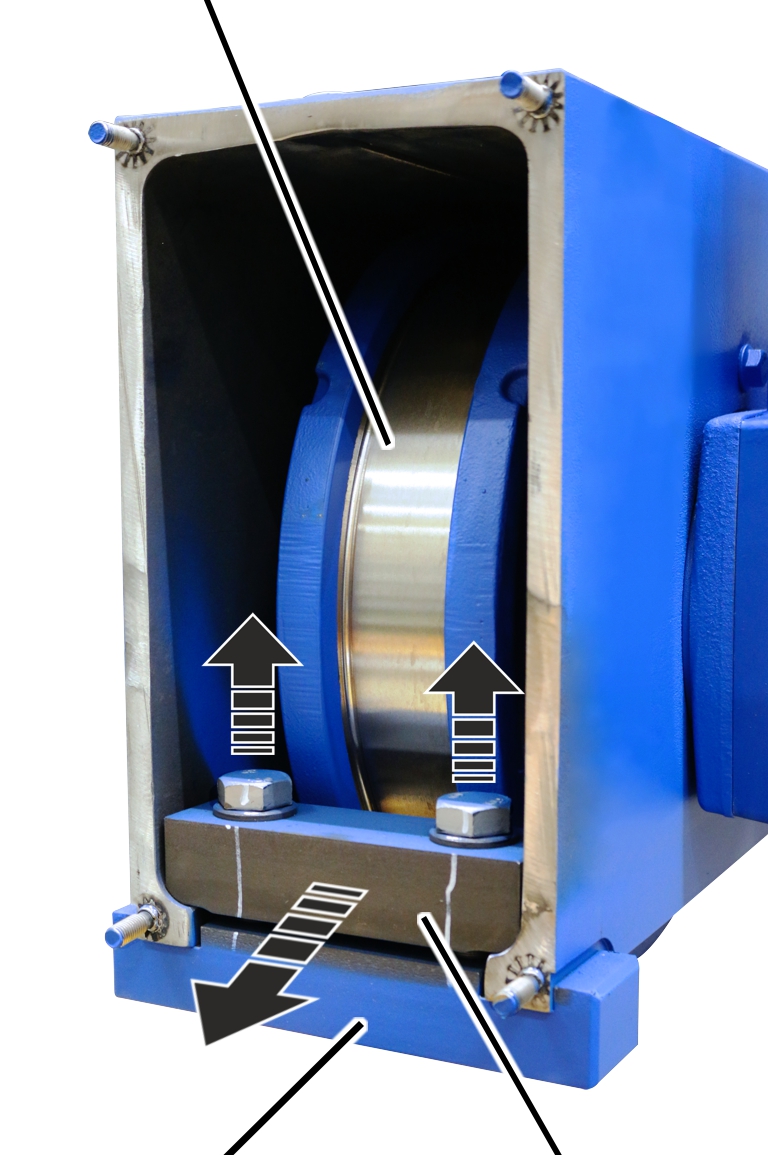 Los testeros en carros tamaño 280, 350 y 420 tienen una pieza de apriete en la roldana motriz. Para poder desmontar la roldana hay que desmontar primero la pieza de apriete.