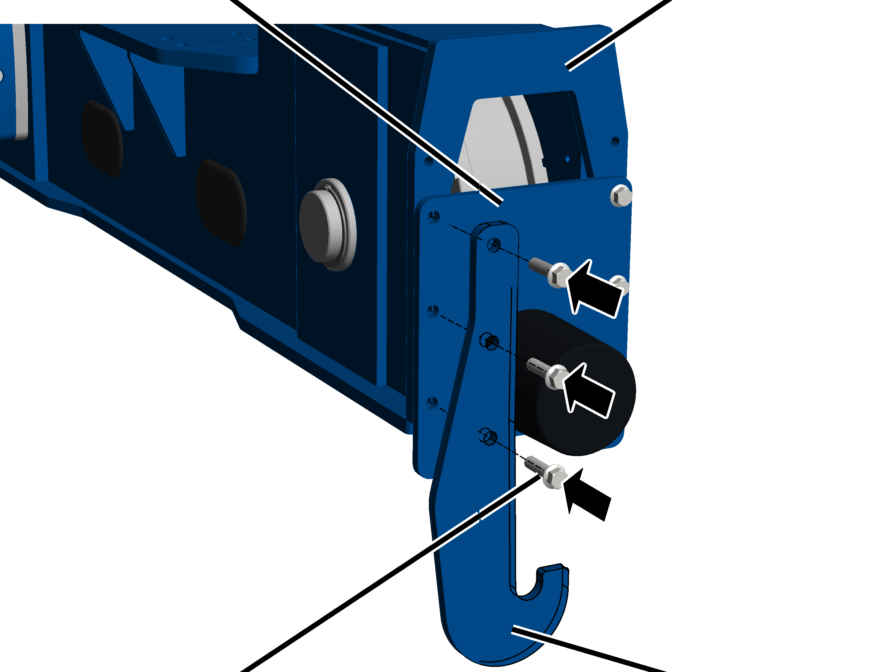 anti-descarrilamiento en la roldana no accionada, a través del orificio desde