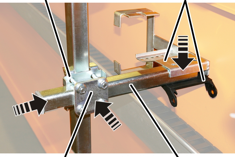 Dependiendo de la viga principal (viga I o viga cajón) y del tipo de alimentación de corriente (línea de arrastre o cadena portacables), el brazo de arrastre deberá montarse de formas distintas.