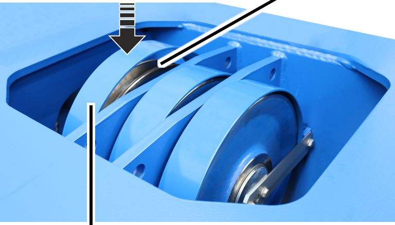 Con una disposición 8/2 y un accionamiento de elevación GM 5000 o GM 6000, hay tres poleas de inversión montadas en el bastidor del carro.