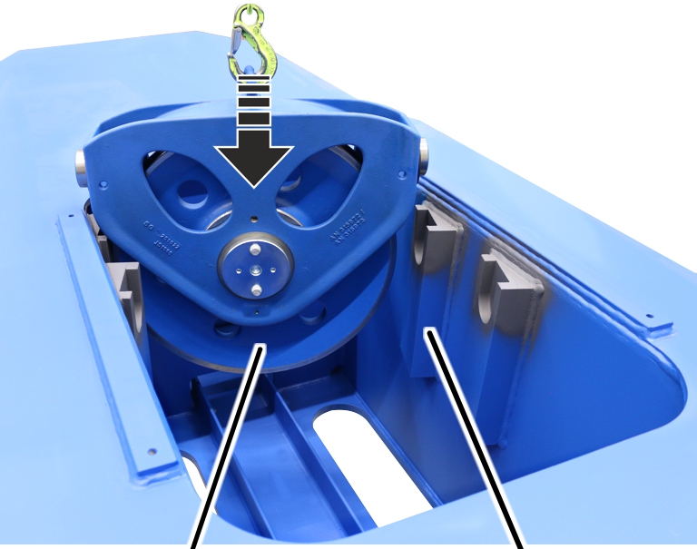 A continuación se muestra la sustitución de las poleas de inversión en un polipasto de cable con una polea de inversión (disposición 4/2). La sustitución en un polipasto de cable con dos poleas de inversión (disposición 6/2) no se diferencia mucho.