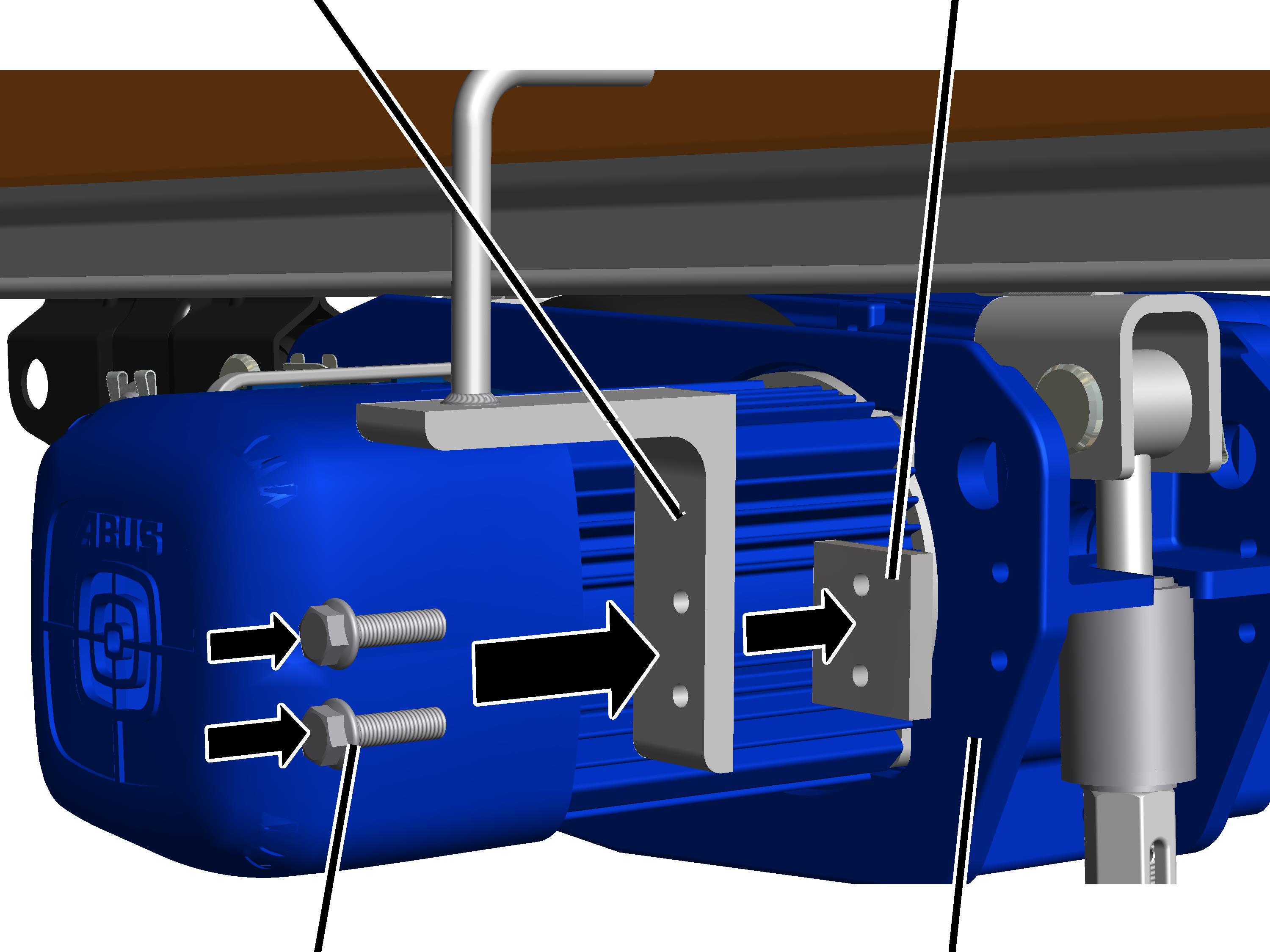 ─ El interruptor de cruceta con el cable de conexión corto se monta en a la viga de la grúa, en el lado en que se ha montado el mando. El interruptor de cruceta con el cable de conexión largo se monta en en el extremo opuesto de la viga de la grúa.